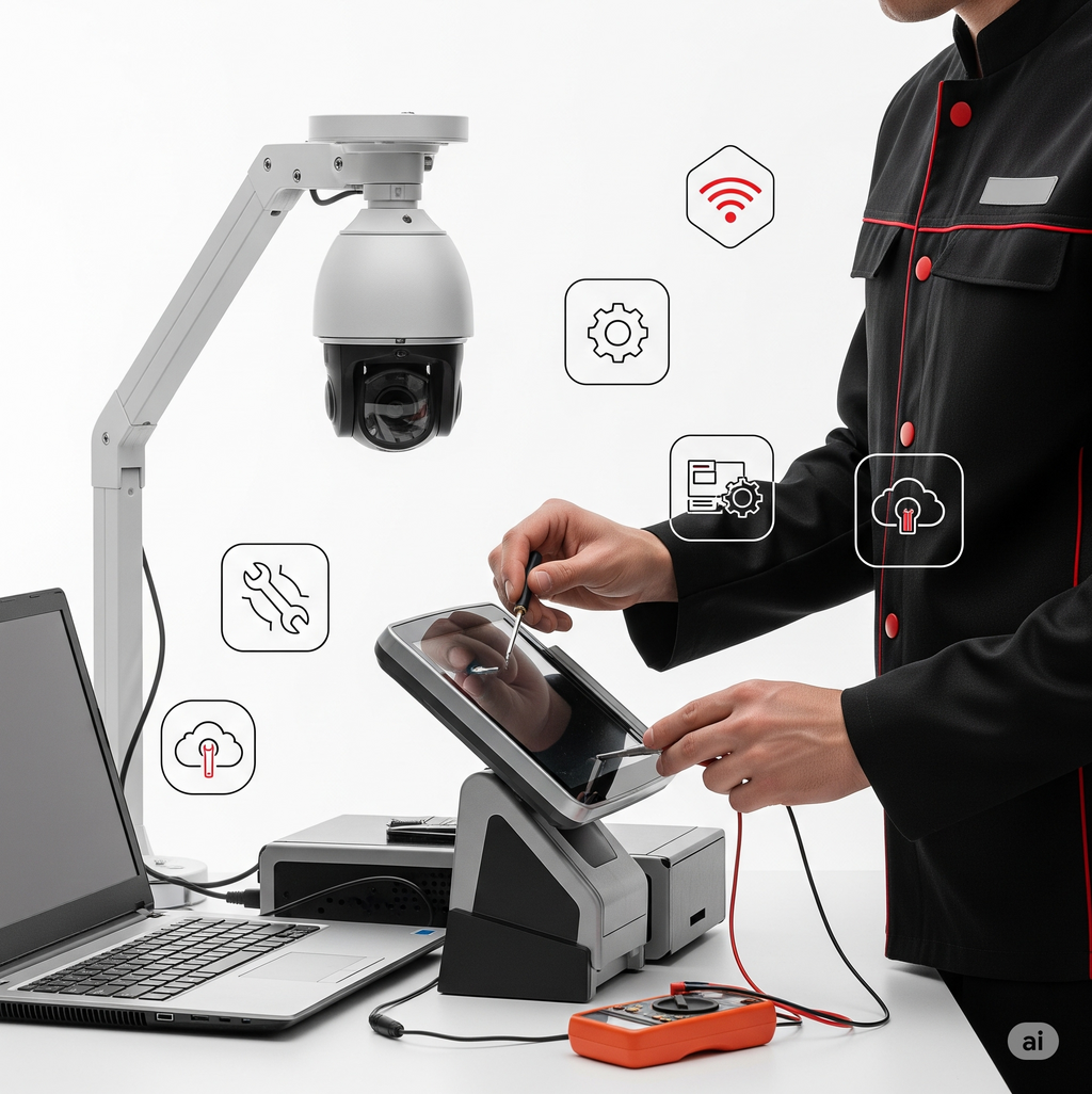 Soporte y mantenimiento a: CCTV, puntos de venta (POS), control de acceso, cercados eléctricos, equipos de cómputo, infraestructura de redes y telecomunicaciones.